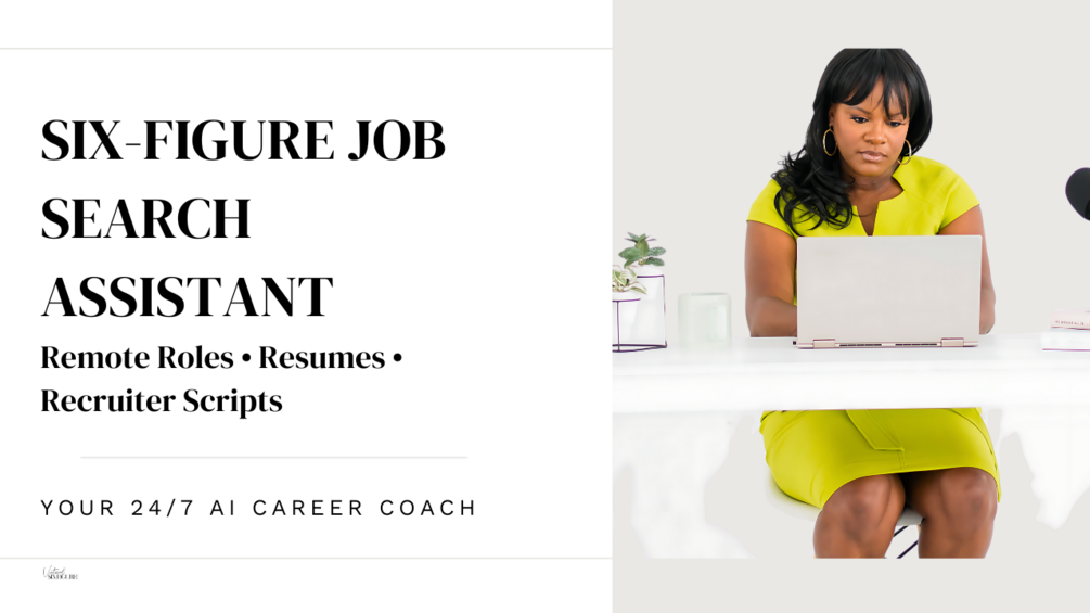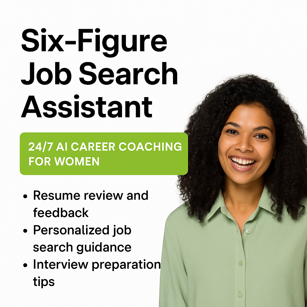 The Six-Figure Job Search Assistant (GPT) is your always-available AI career coach, designed to help mid-career women land remote six-figure jobs with clarity and confidence.